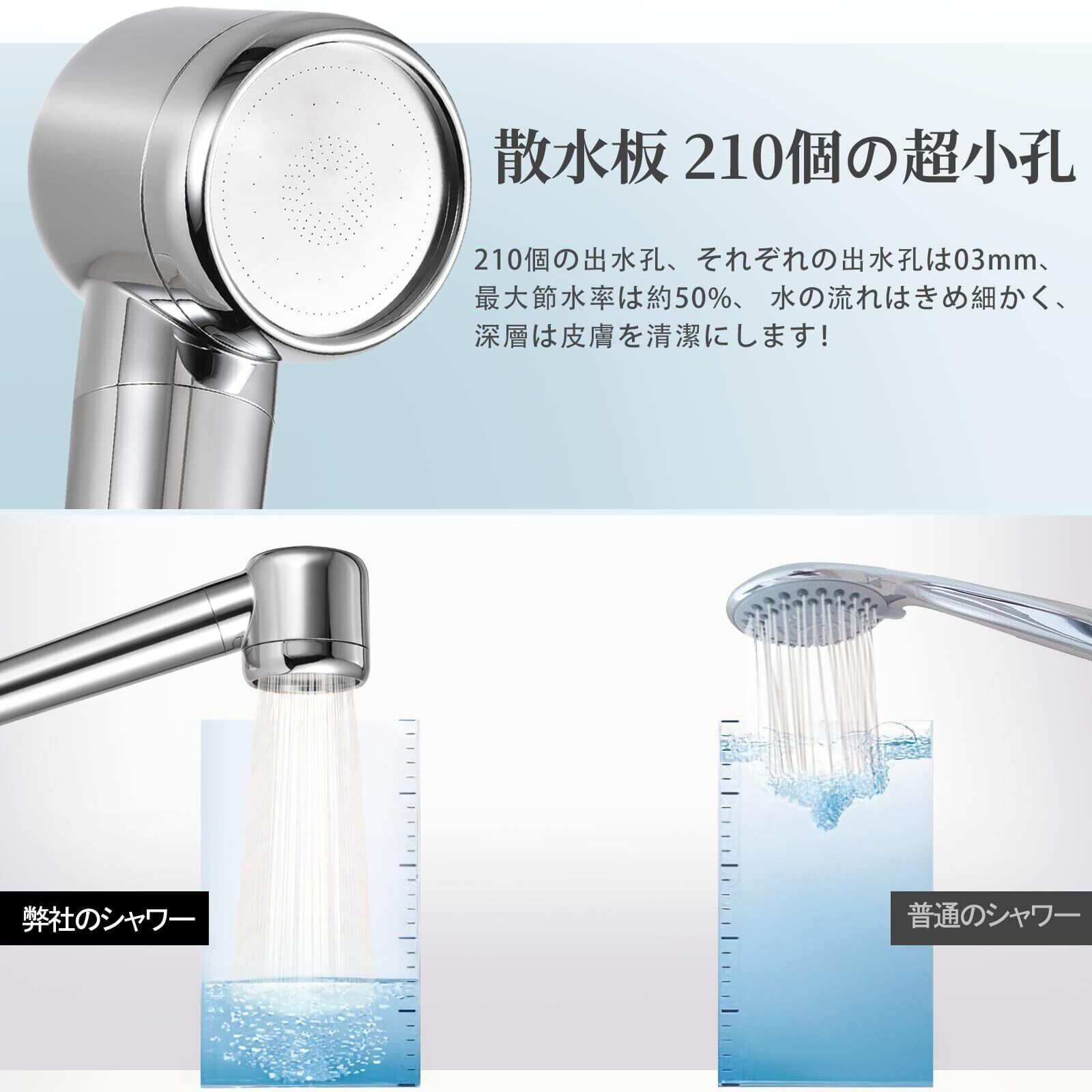 ️【最強増圧・節水最大80%】BYRISONの低水圧用シャワーヘッドは、210個の最小の吐水口穴で設計されており、空気と水流混合増圧技術を採用しており、普通のシャワーヘッドよりもシャワー穴を細かくすることで、少量の水でも水圧を高めて勢い良く水流が出る。節水最大80%、水道代ガス代を節水節約!