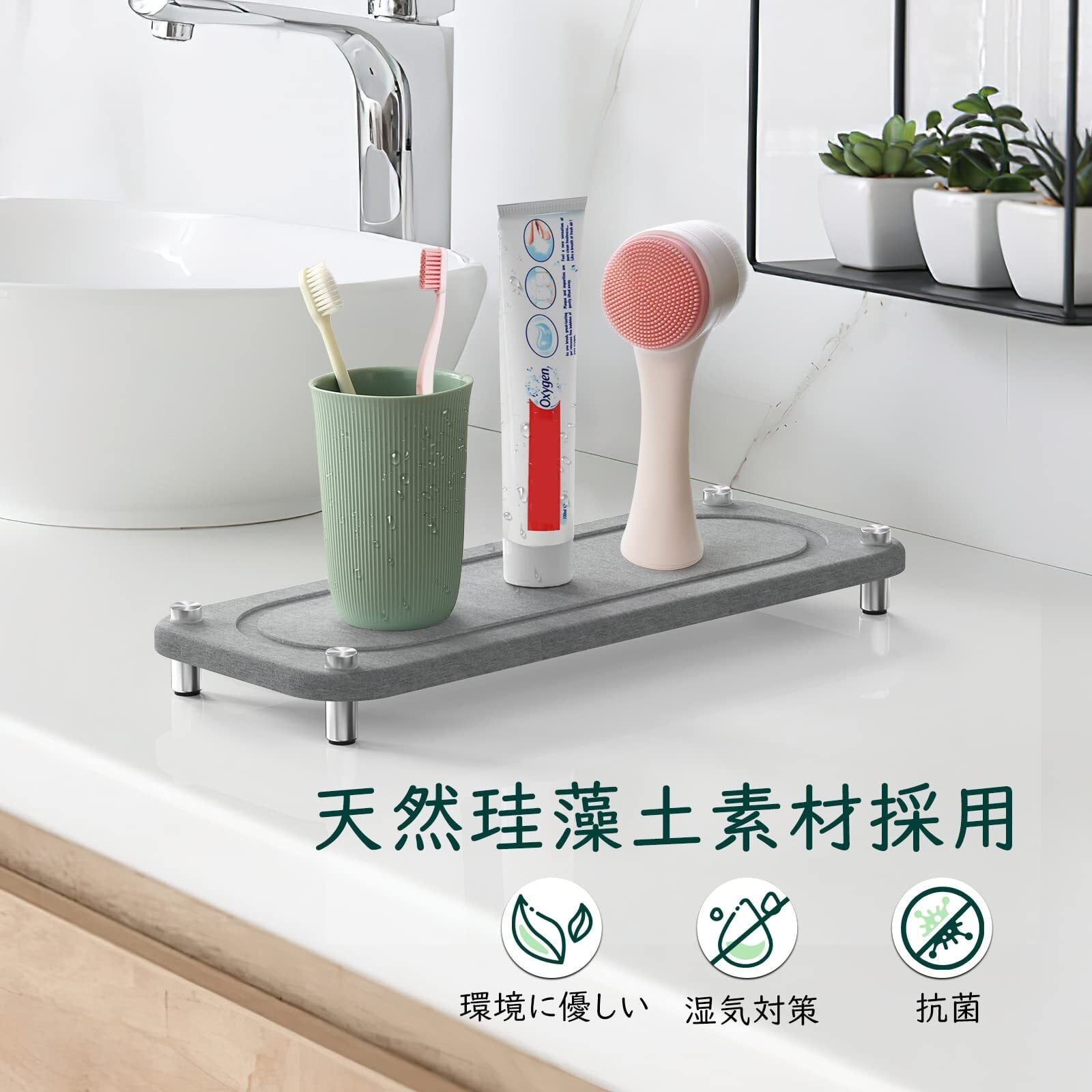 珪藻土トレー Luxspire 速乾トレー 石鹸置き 洗面所 小物置き トレイ 吸水速乾 歯ブラシスタンド 水切りマット キッチン 洗面台 抗菌 アスベストなし コップ置き 脚付 滑り止め LightGray