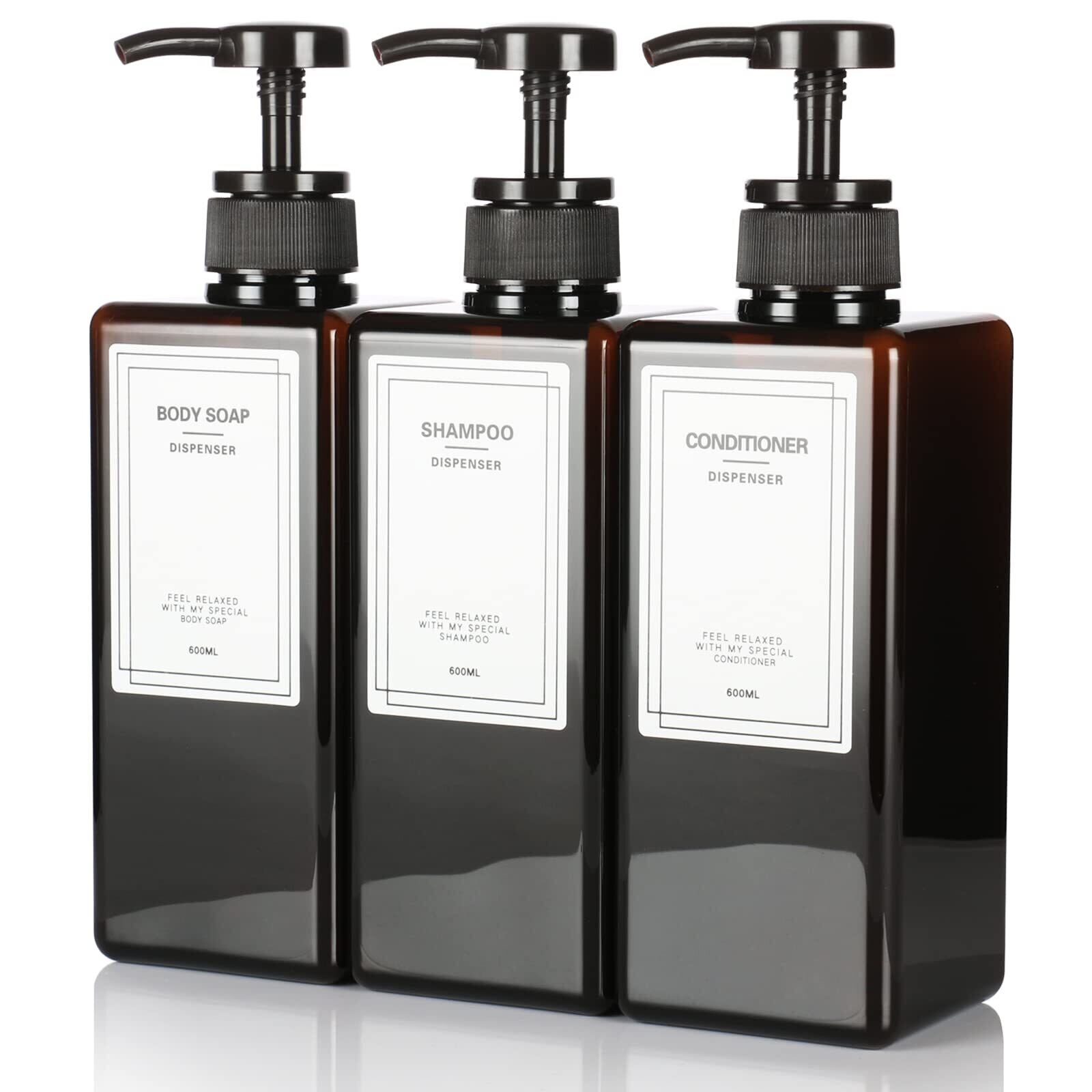 IRETION シャンプーボトル ディスペンサー 詰め替えボトル ロート 漏斗付き 600ml 3本セット (ブラウン)