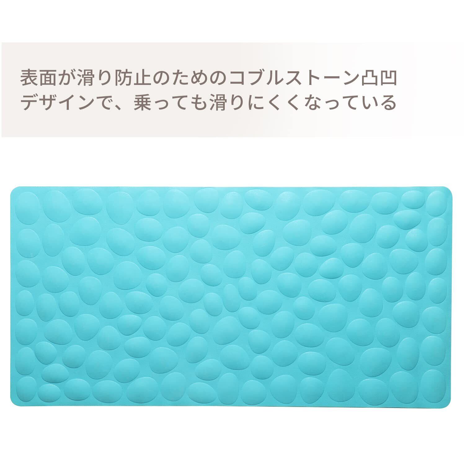 IRETION お風呂 すべり止めマット 浴槽 40×80cm ストーン柄 天然ゴム製 お風呂マット 介護 転倒防止 吸盤付き 柔らかい (ブルー)