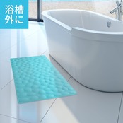 【安全安心】本製品は吸盤で安定性抜群!表面が滑り防止のためのコブルストーンような凸凹のあるデザインで、乗っても滑りにくくなっています。裏面が全面に吸盤で床としっかり吸着固定、ズルズル動いたりしません。耐熱温度が70℃まで、お湯を張った浴槽でも安心して使えます。