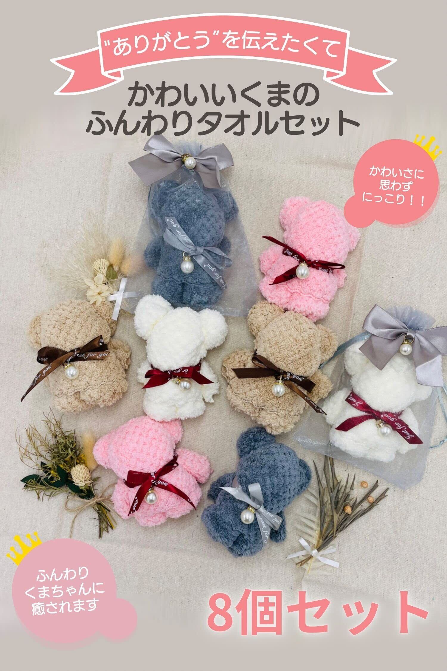 プチギフト 退職 【ほんの気持ちにぴったり】 タオルベア ギフト お礼 ベア クマ タオル タオルハンカチ ハンカチ レディース お返し 粗品 退院 サンキューカード オーガンジーラッピングバック付き 5個 8個 10個 (パールくまちゃん8個) | kki