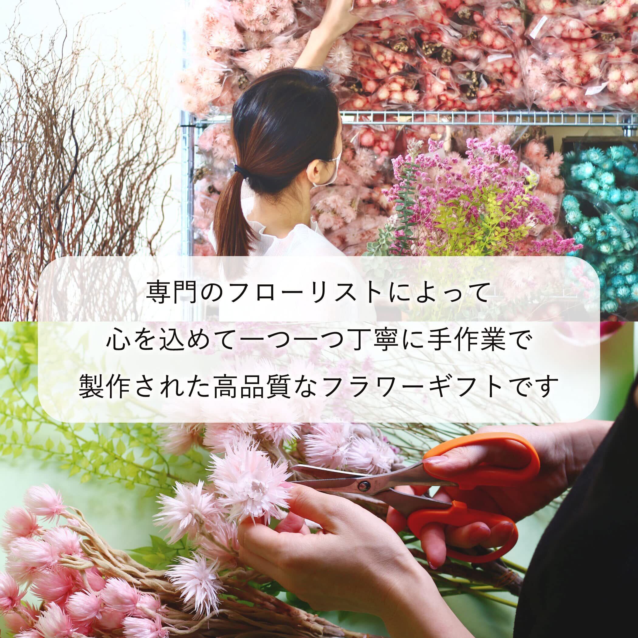 【FLOWERiUM︎はラッピングにもこだわりを】オリジナルギフトBOXに入れて大切にお届けいたします。母の日に日頃の感謝を込めて贈ると世界にたったひとつの特別なプレゼントに。大切な人への贈り物におすすめです。 ※一点ずつ手作りであり、自然のものを使用しているため色合いや形には個体差があります。 実物に近いお色のお写真を使用しておりますがご使用の液晶画面により実物の色と異なって見える場合がございます。ガラス瓶に入っておりますので、落下などで破損しないように取り扱いにはご注意ください。※ギフトとしてご利用のお客様へ。贈り主の表示に必要なため必ず『ギフトの設定』にチェックを入れてください。贈り主様のお名前を受取人様がご確認いただくために必要となります。