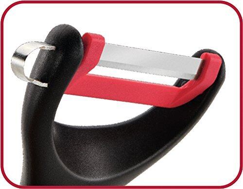素材・材質:刃・芽取りパーツ/ステンレス鋼(耐熱温度100度)、刃周り/ポリプロピレン(耐熱温度100度)、持ち手/ABS(アクリロニトリル・ブタジェン・スチレン)樹脂(耐熱温度100度)、ブレードカバー/ポリプロピレン