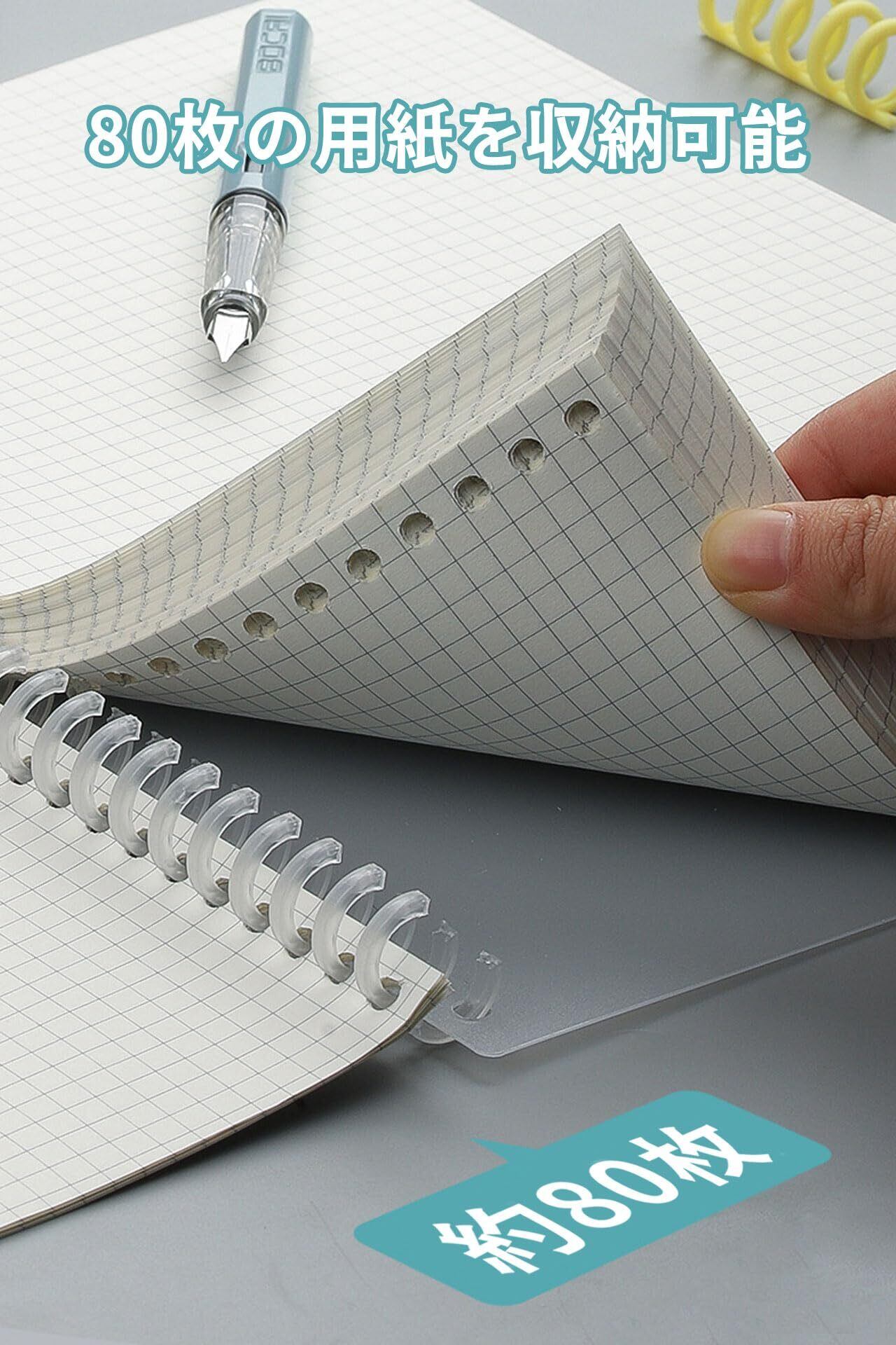 【特徴】リングの長さをハサミでカットできるので、様々なサイズの用紙に対応できます:30穴/A4、26穴/B5、20穴/A5。