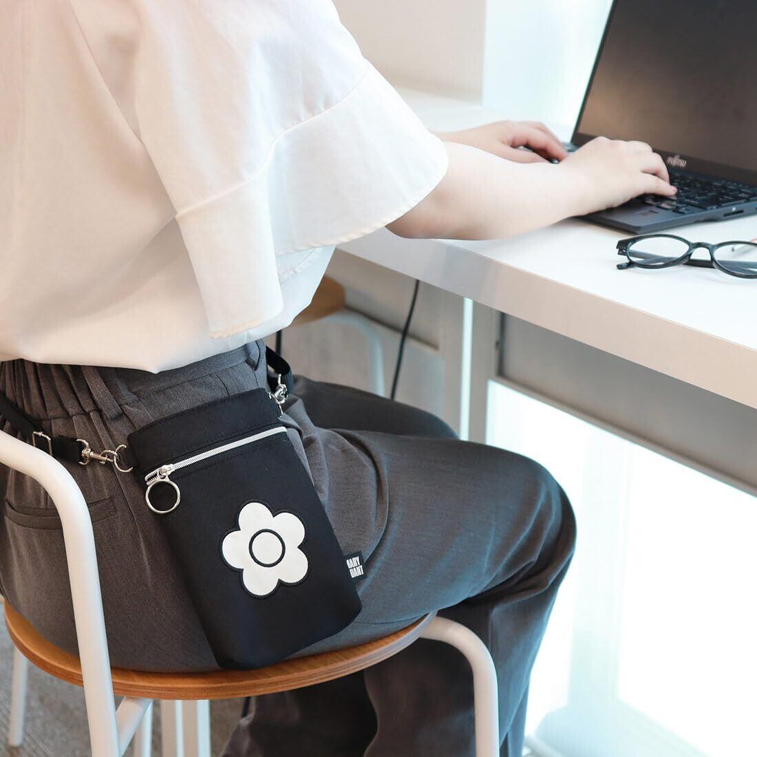 【大人の移動ポケット】スマホやハンカチなど、必要最低限のアイテムを入れるのにちょうどいいサイズです。使いやすいカラーで様々なコーディネートに馴染みます。オフィス内の移動や旅行先で常に持ち歩きたいスマホやハンカチ、リップなどを収納できる便利なアイテムです。