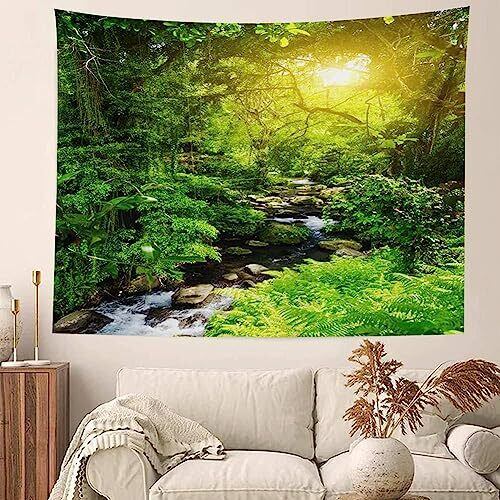 Pknoclan タペストリー 森 渓流 木 大判 壁掛け 自然 235x180cm布ポスター 新緑の並木 部屋や窓の飾り インテリア リビングルーム ベッドルーム お店 個性ギフト