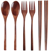 AOOSY 木のスプーン フォーク 箸 6点2セット 塊木で掘り出した接着剤なし天然木製食器セット AOOSY 天然漆 弁当箱用 食堂用 サラダ カレー スープ 中華料理用 チャーハン