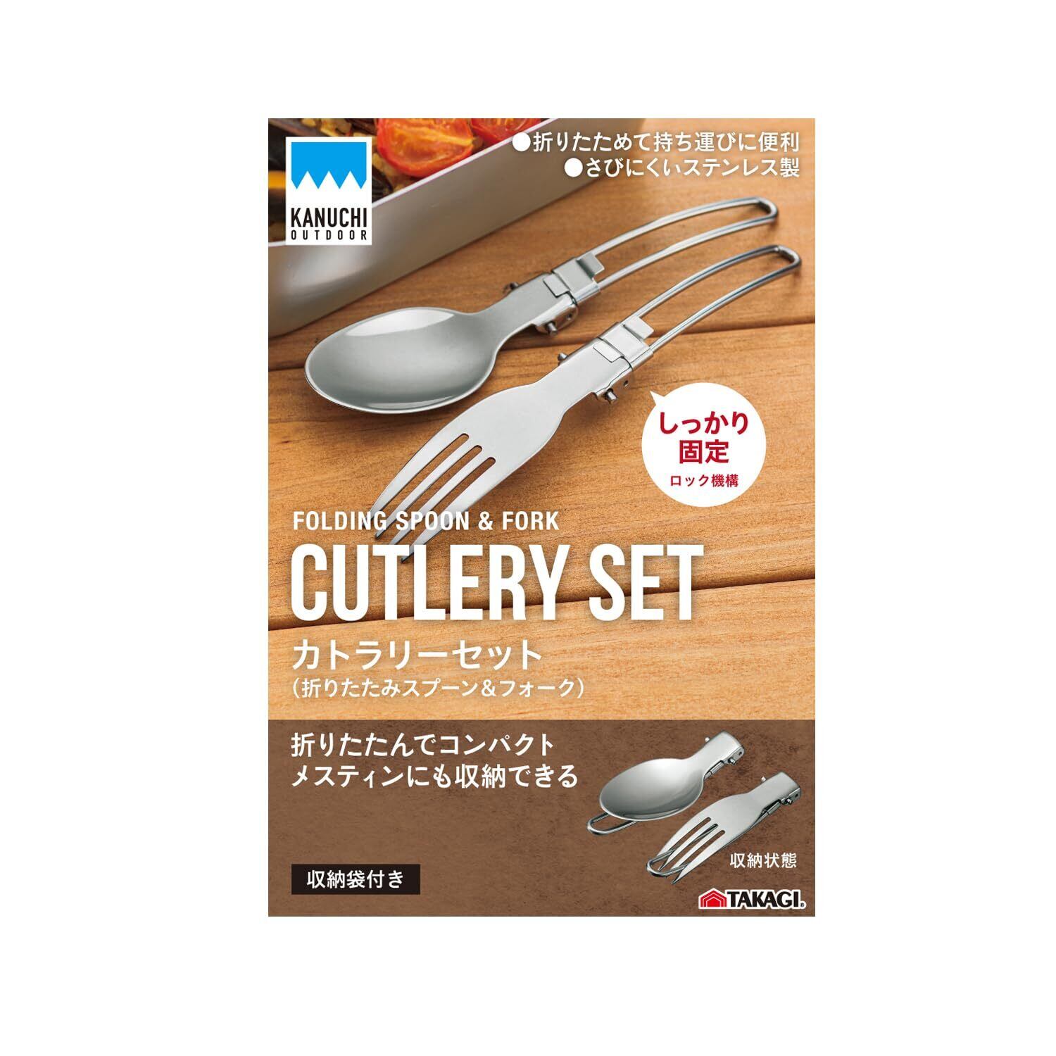 髙儀(Takagi) KANUCHI OUTDOOR カトラリーセット 折りたたみ スプーン フォーク 折りたたんでコンパクトに収納可能 メスティンにも収納可能 収納袋付き 材質:ステンレス鋼 固定ロック機構 キャンプ キャンプ用品 ソロキャン アウトドア 野外用 登山 調理器具 災害時 高儀 たかぎ TAKAGI