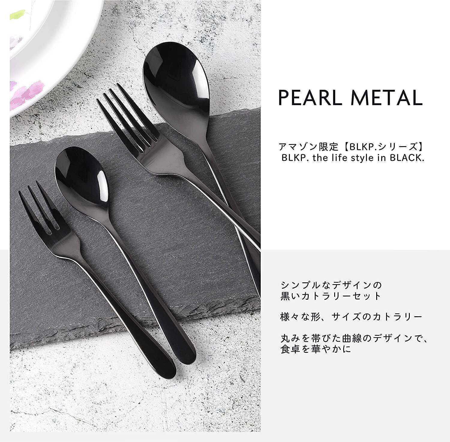 【BLKP】 パール金属 カトラリー セット デザート スプーン / フォーク / ティー スプーン / フルーツ フォーク 限定 ブラック チタン メッキ 加工 4点セット BLKP 黒 AZ-5034