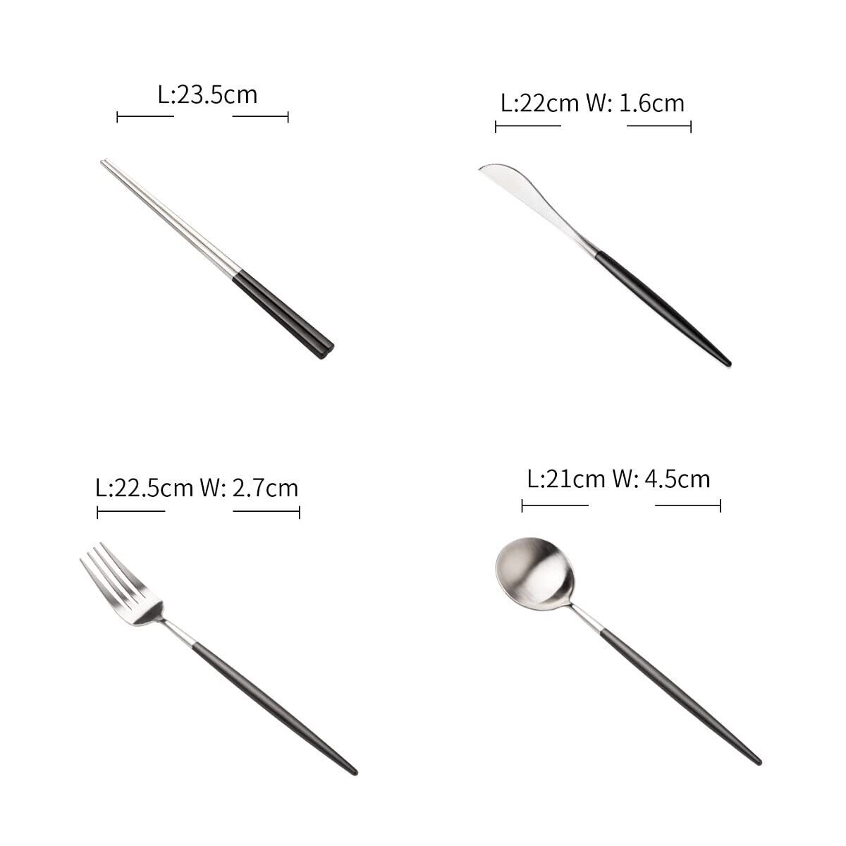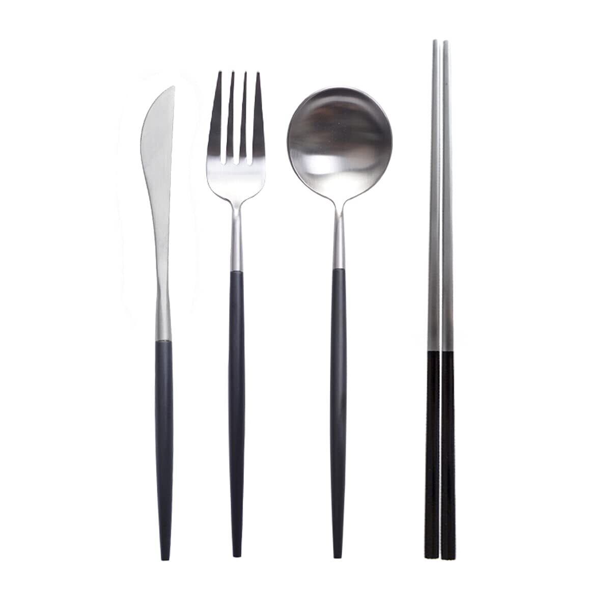 Hive Mind 北欧風 カトラリーアソートセット スプーン フォーク ナイフ お箸 4本セット (ブラックシルバー)