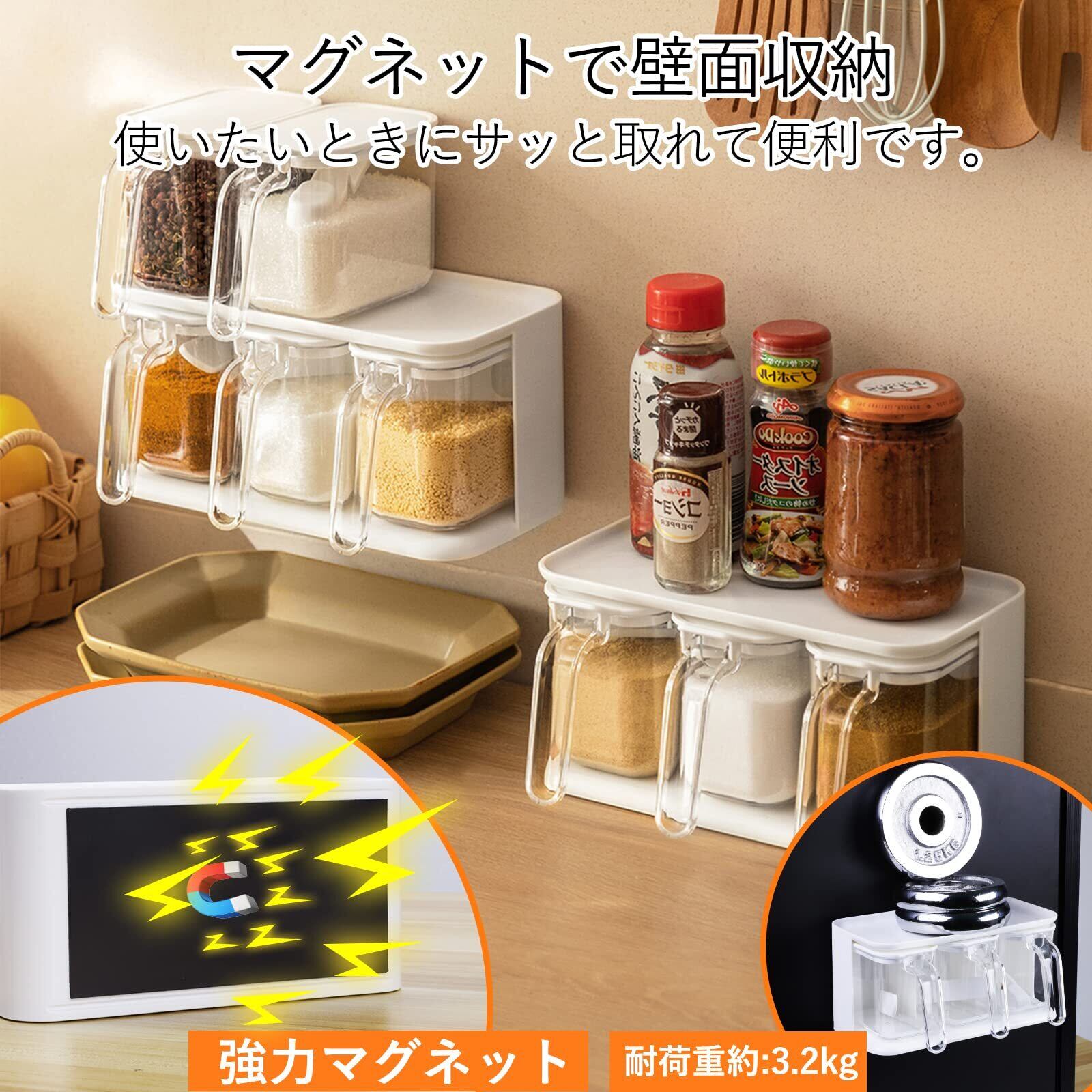 Toski 調味料入れ マグネット スタンド 2層 キッチン用 スパイス収納ラック 壁掛け 3個組 ストッカー ケース 砂糖 塩 コショウ入れ ポット 省スペース お手入れ簡単 防水防湿 スプーン付き 片手で簡単 組み立て不要 ホワイト | kki