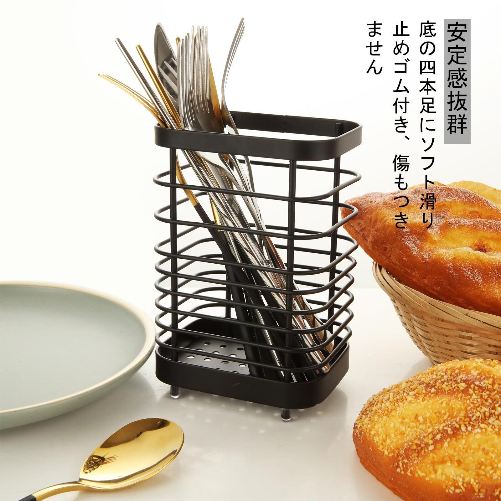 【2個セット】カトラリースタンド 箸立て 水切り キッチンツールスタンド 倒れない 10x7.5x15cm(Mサイズ) 箸ラック ストンレス 箸入れ 食器入れ フォーク収納 多機能 便利 おしゃれ (ブラック) | kki
