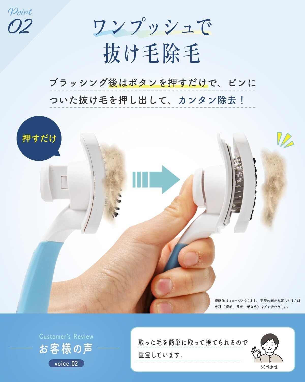 【トリマー監修】WIDREAM【抜け毛が簡単に取れるボタン式&先端保護加工でペットに優しい】ペット用ブラシ 猫ブラシ 犬ブラシ スリッカーブラシ