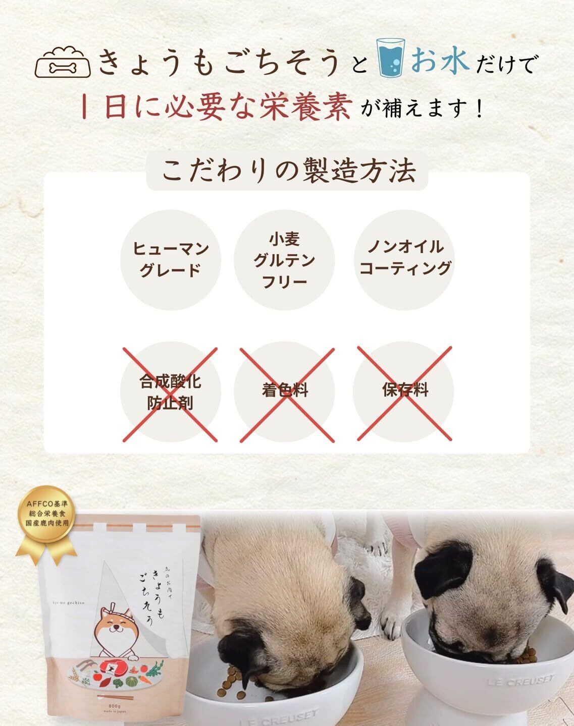 きょうもごちそう ペットフード 犬 国産 無添加 鹿肉 犬 ご飯 ドッグフード 小型犬 中型犬 全犬種 シニア 子犬 全年齢対応 犬 ごはん 小粒 小麦グルテンフリー アレルギー対応 低脂肪 総合栄養食 800g