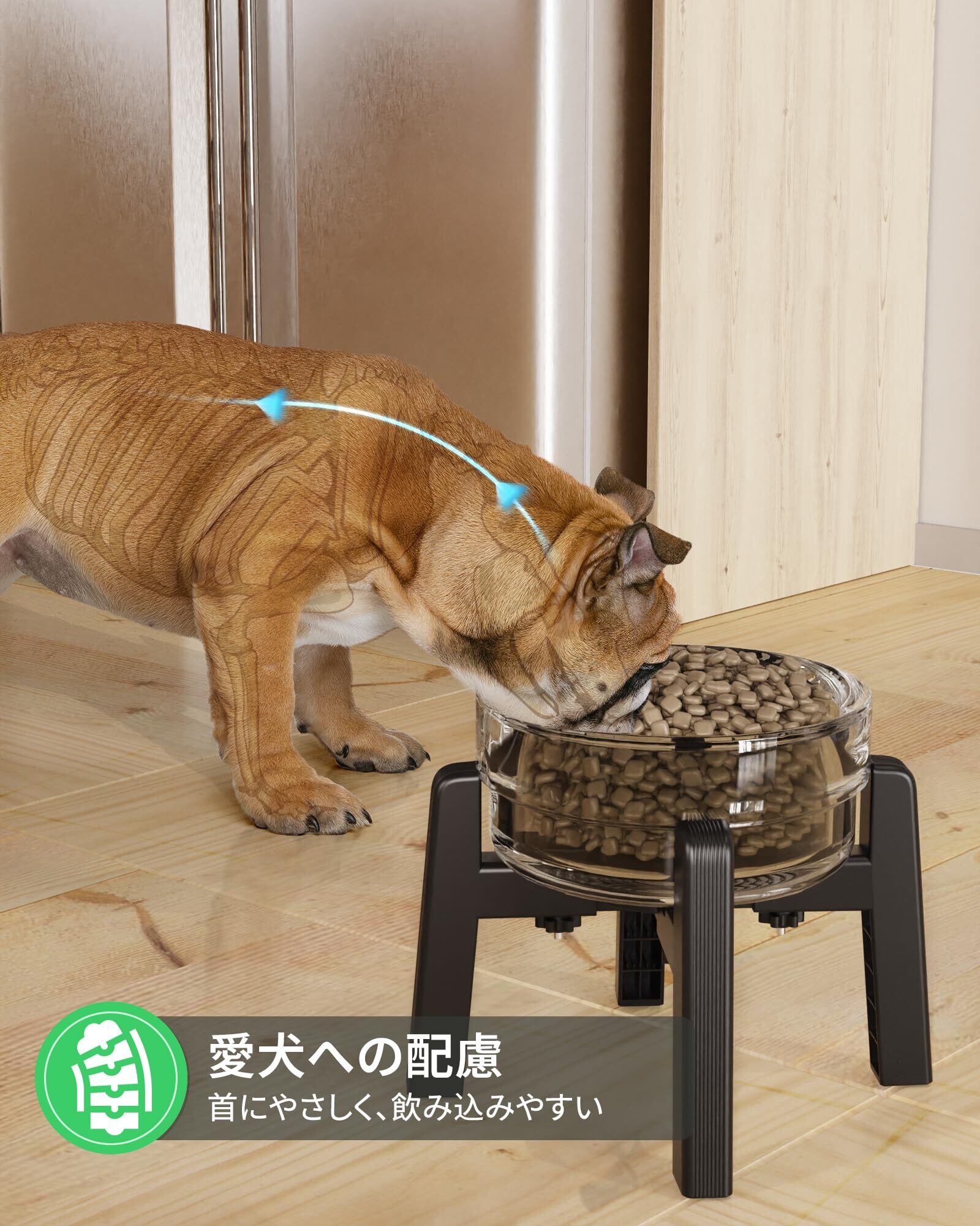 【幅が調節可能】今市販しているスタンドのほとんどは、調節できません。しかし、JUNSPOWフードボウルスタンドは、幅15.5~20.5cmの調節が可能です。つまり、あらゆる形やサイズの食器に適しています。 また、簡単に調整できるように設計されています。 JUNSPOWのスタンド1つだけで、あなたの大切なペットの各成長段階に十分付き合えます。