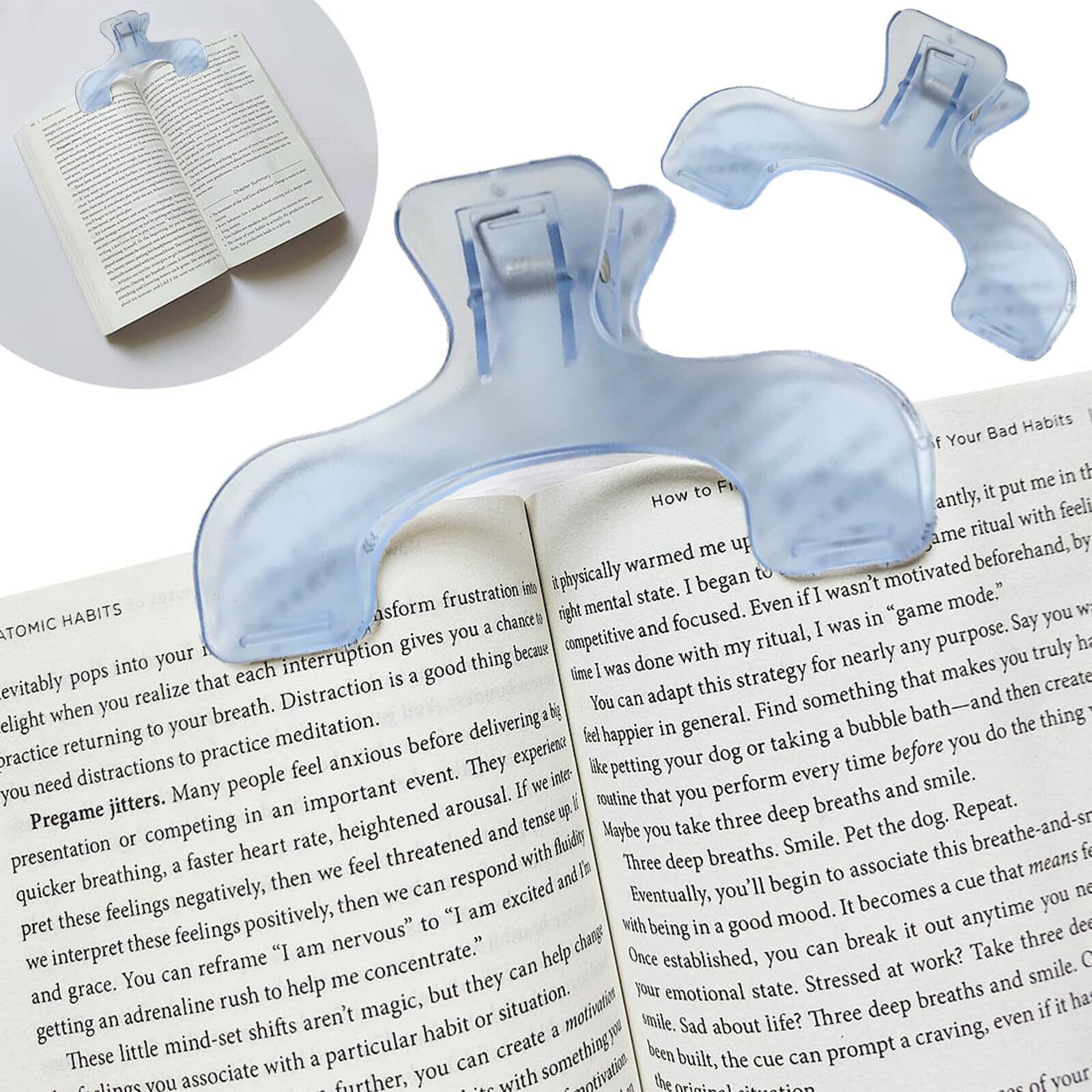 DERCHIAブッククリップ クリップ 2個セット 透明 読書用ブッククリップ 教科書クリップ 開いたまま 固定 本 教科書クリップ 勉強クリップ 耐久性 ペーパー 書類用 文房具 事務用品 学生 家庭 学校 オフィス用品 (青)
