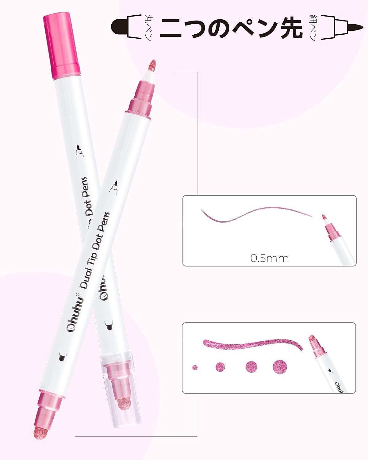 Ohuhu ドットペン 15色セット 0.5mm 押し ドットマーカー メタリックと基本色 ドット カラーペン 水性ペン お絵かきセット DIY メモ 塗り絵 落書き