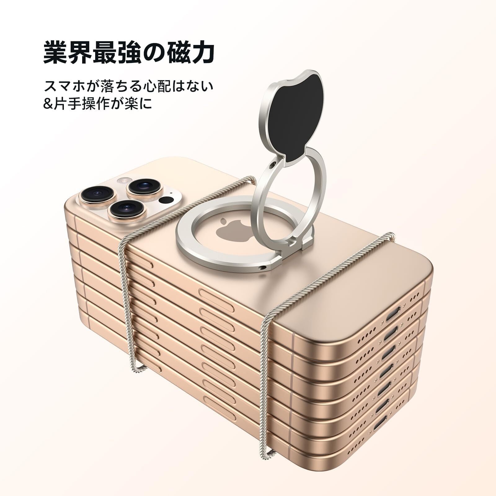【超強両面マグネット】Bolvunes スマホリング MagSafe対応 ホーローパネルに磁性吸着可能 風呂場&キッチンに最適! 自撮り マグネットスマホスタンド バンカーリング 横縦両立 角度調整可能 磁気増強メタルリング付き iPhone Androidなど全機種対応【H3】 | kki