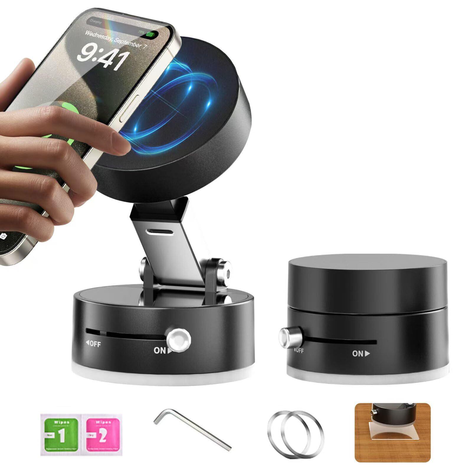 「真空磁気吸着式のスマホホルダー・日常と車載でも多用途対応」車載ホルダー MagSafe対応 車用吸盤ホルダー スマホスタンド 安定感 全機種対応可 伸縮可能 磁気式 表面を平らにするシールとリングシール付き 片手操作 車内 キチン リビング 冷蔵庫
