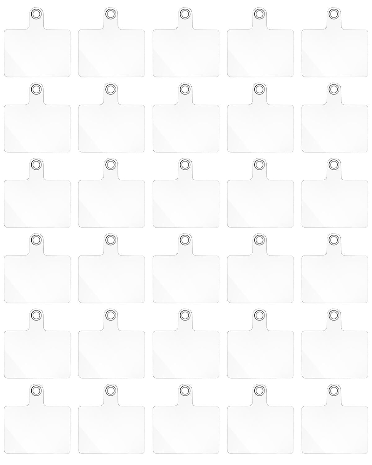 ストラップホルダー30枚セット、カラー:透明。サイズ:55mm×35mm、ハトメ穴内径:5mm。