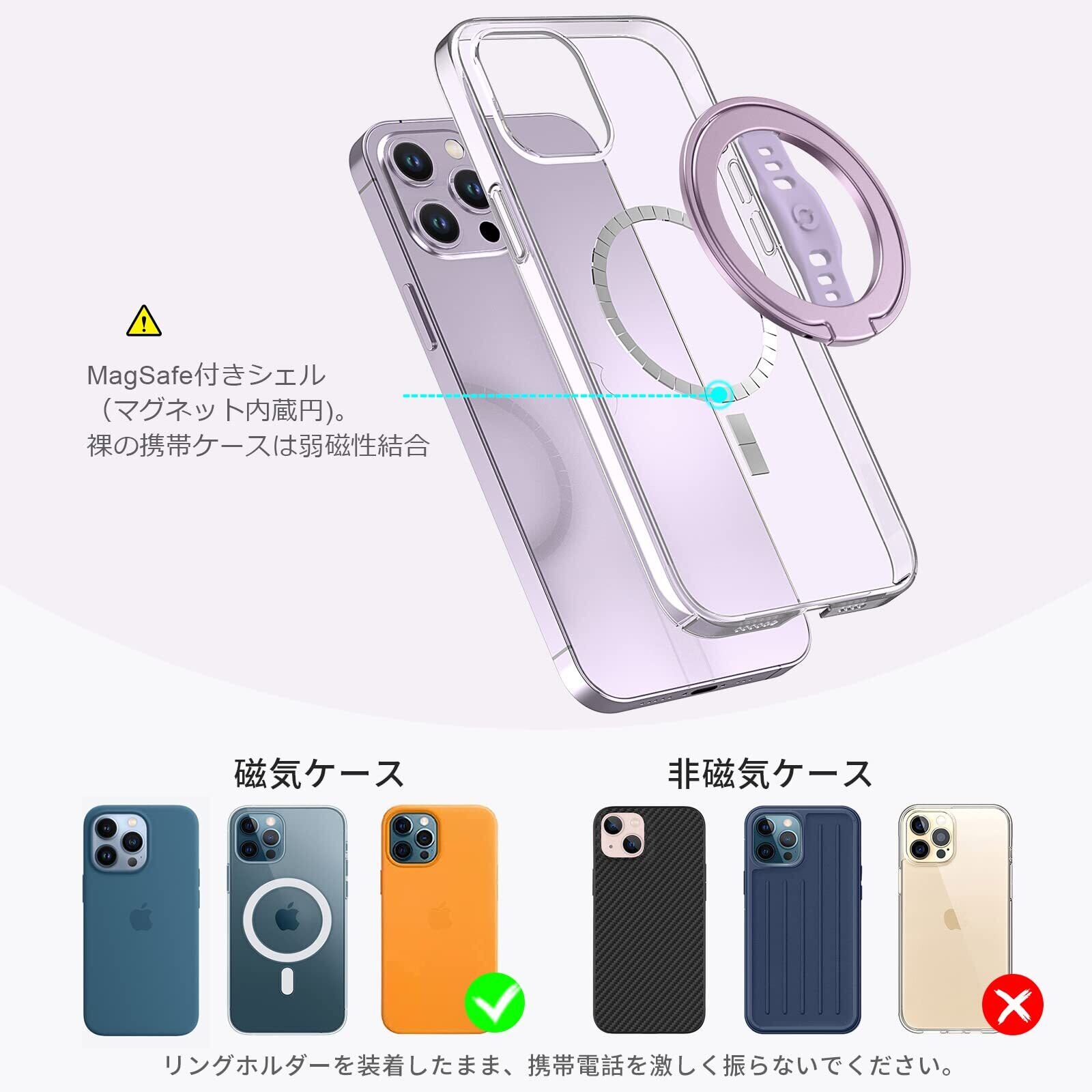 【安定&超強力マグネット】アルミ合金素材を採用により、内臓はN52磁石で、しっかり安定感、強力な磁吸力を実現し、簡単に取り外すことができます。5種類のカラーバリエーションお使用のiPhone 13、12 シリーズにしっかりとスマホリングが固定されます。