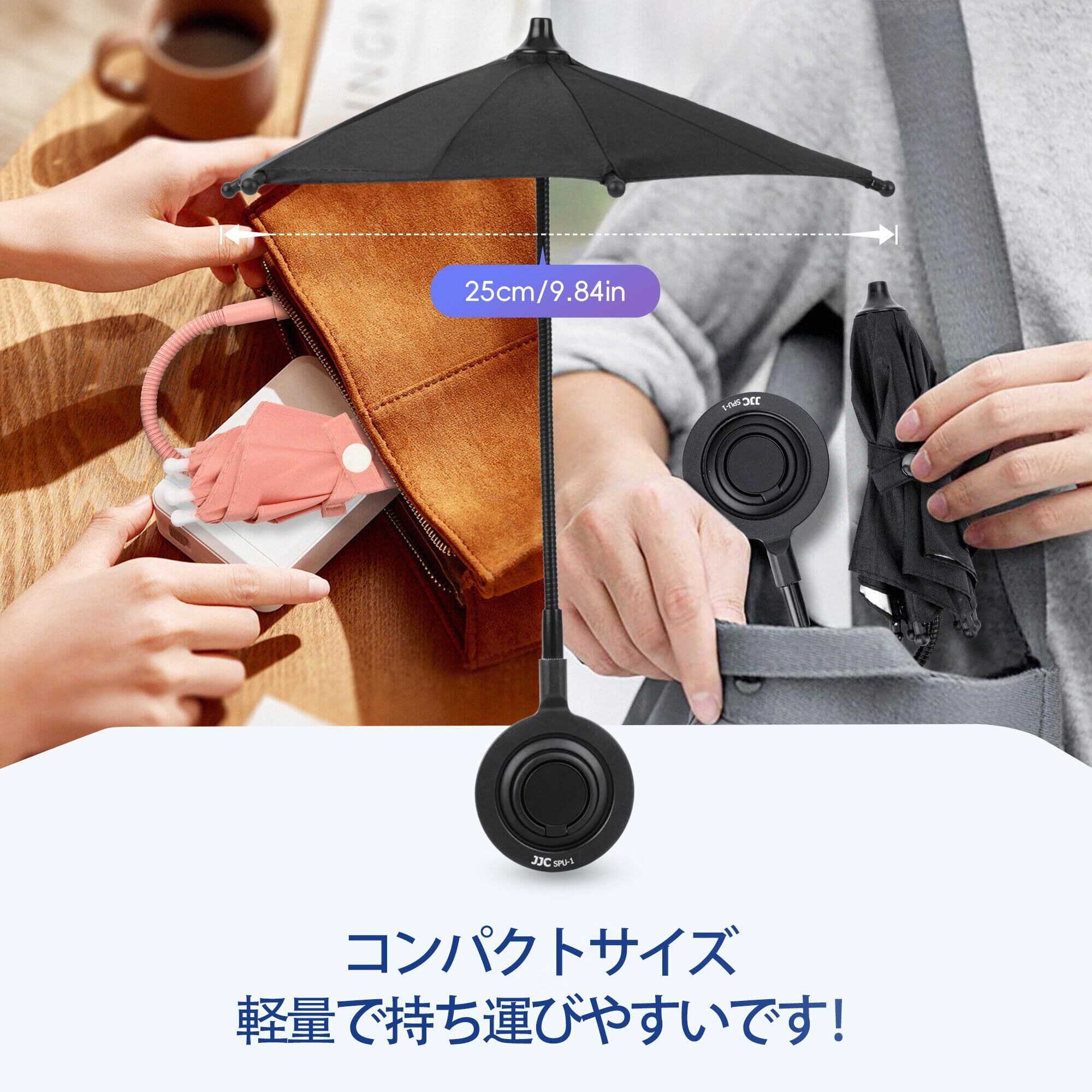 【360°回転可能】開く直径:25cm(強風に非対応)。調節可能なフレキシブルアームと360°回転する機構により、傘の方向を日光に簡単に変更できます。折りたたみ式収納可。コンパクトで携帯便利。