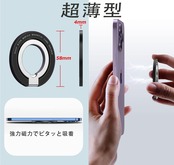 【強力磁力でピタッと吸着】スマホリングは約800gまでの荷重に耐える強力マグネットを採用。 スマホ リングを装着することで片手操作時、スマホの落下防止にもつながります。