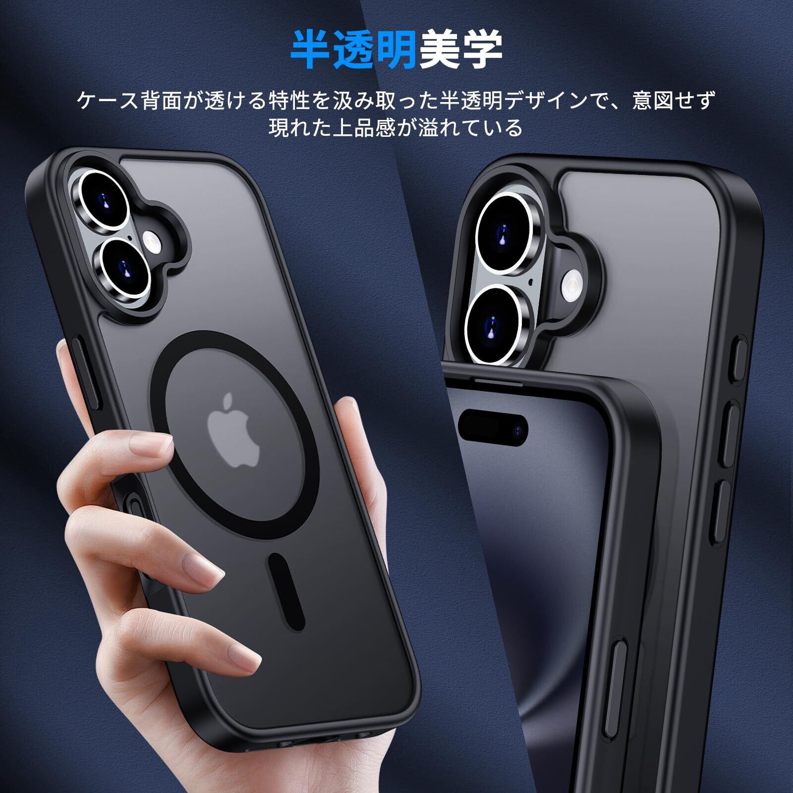 Aunote iPhone16 ケース MagSafe に対応 あいふおん16ケース マグネット 耐衝撃 レンズ保護 耐久性 黄ばみなし 指紋防止 ワイヤレス充電対応 アイフォン16 ケース 6.1 インチ 半透明 ブラック