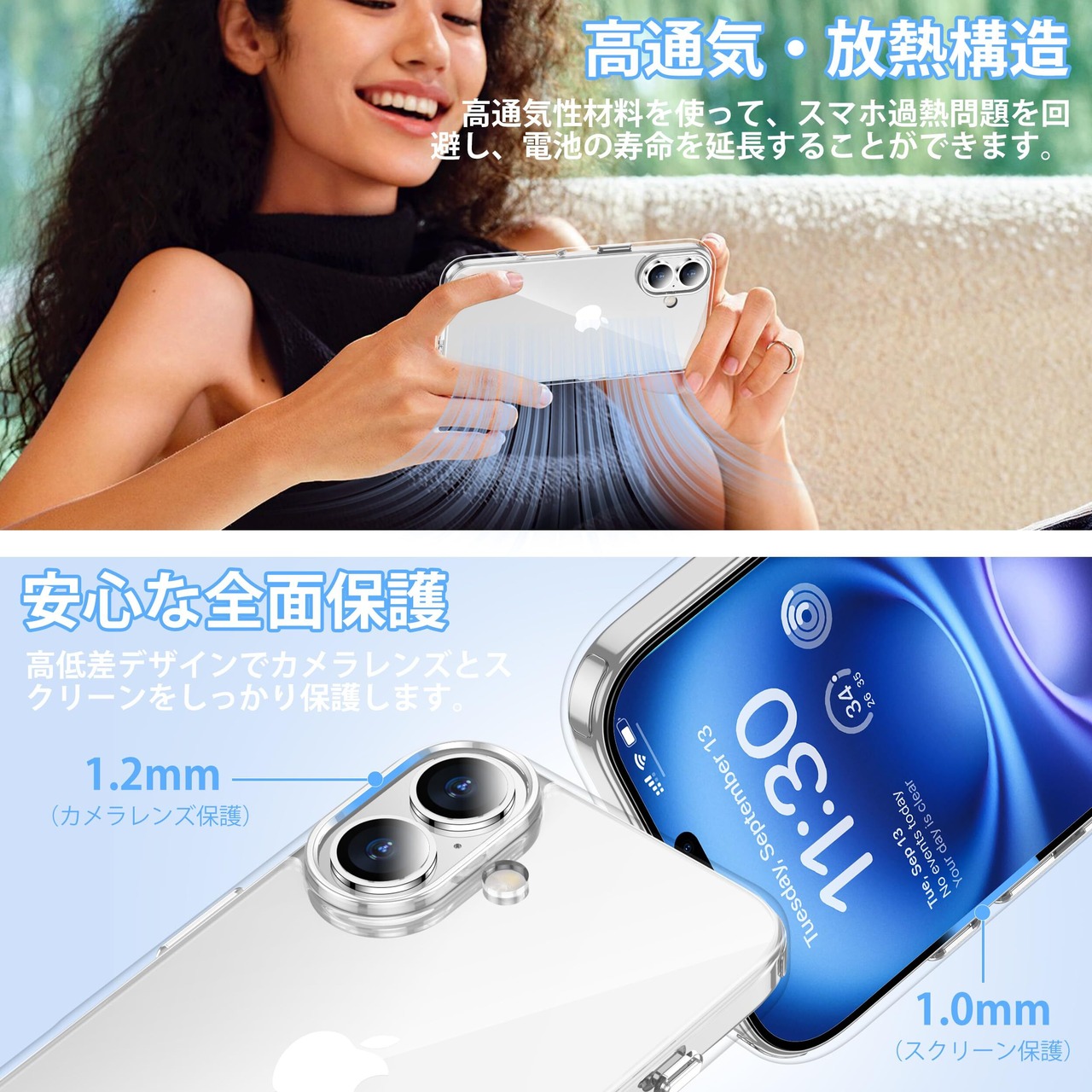 【一体感抜群・放熱通気性】薄型設計で、iphone 16 本体の曲線に密着し、一体感を実現しています。さらに、このアイフォン16 ケースは高通気性材料を採用し、精密な放熱構造を組み合わせ、スマートフォン内部の熱の放出を効果的に促進し、過熱問題を回避し、電池の寿命を延長することができます。