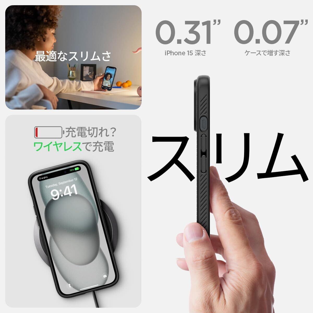 【18年社歴の技術力】Spigen iPhone 15 ケース 耐衝撃 薄型 ストラップホール 軽量 さらさら 米軍MIL規格取得 2重構造 レンズ保護 指紋防止 擦り傷防止 マット仕上げ ワイヤレス充電対応 リキッド・エアー ACS06790 (マット・ブラック) | kki