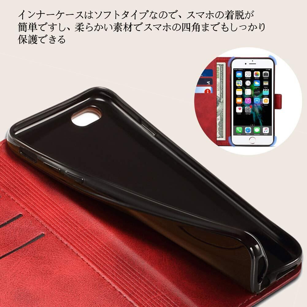 手帳型ケース 外部のカバーは合皮レザー素材を採用しており、放熱性や耐衝撃が良く、傷や埃を防ぐことができるiPhone7カバーです。インナーケースは弾力性のあるソフト素材を採用しており、角までしっかり保護できるiPhone8ケースです。