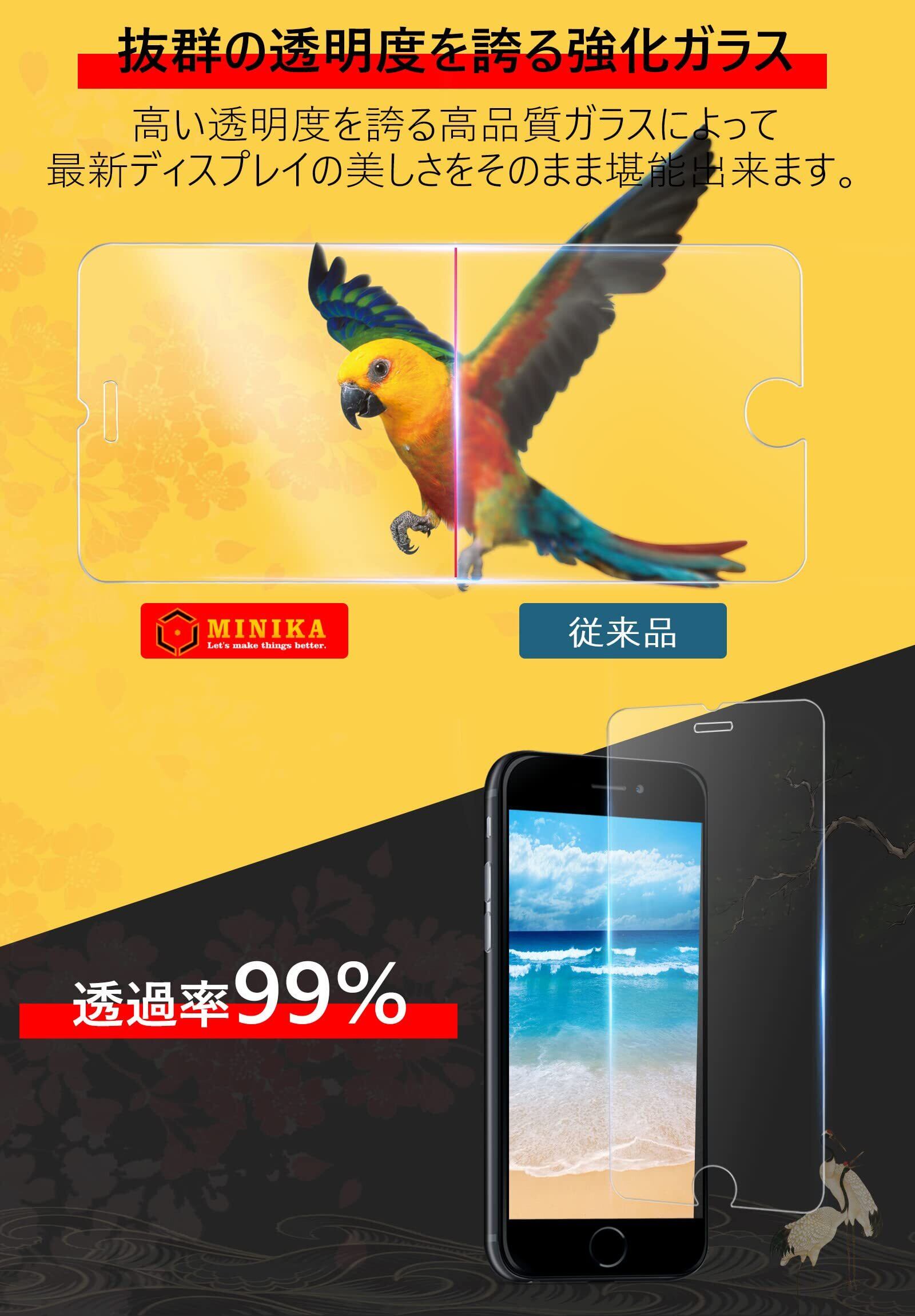 MINIKA 【2枚セット】 iPhone SE3 ガラスフィルム 薄い iphoneSE第3世代 保護フィルム 光沢 アイフォンSE3 強化ガラス フィルム iphoneSE3 フィルム 保護シート 画面シート あいふおんせ3 フィルム 【浮きなし/秒で貼り付け/高透過率】